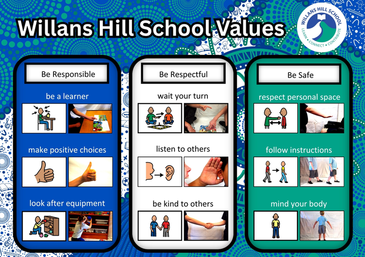At Willans Hill School we have three core values, and these apply across all settings including school, home and community: